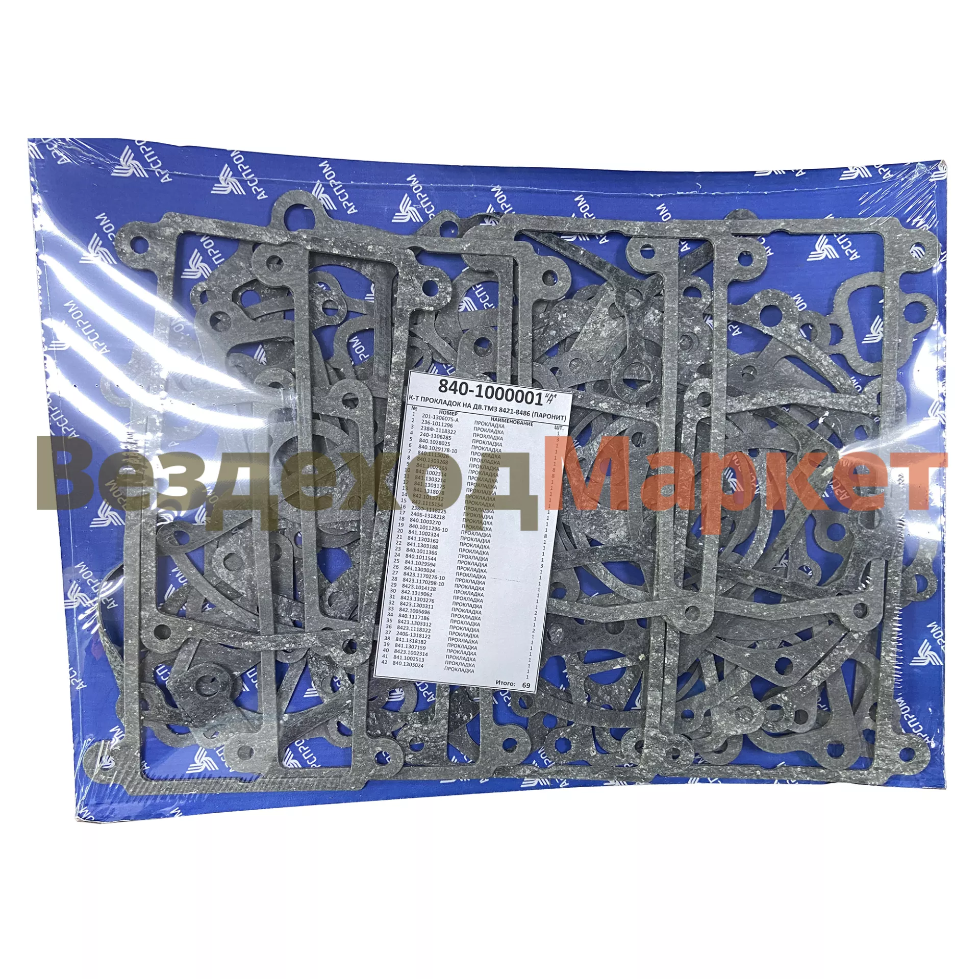 Р/к-т прокладок дв. 840.1000001 (ТМЗ 8421,8486) паронит /АРС/